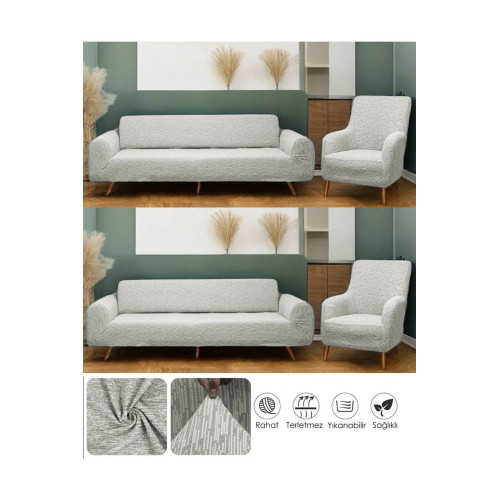 Taş - Rengi Streç Koltuk Örtüsü 3+3+1+1